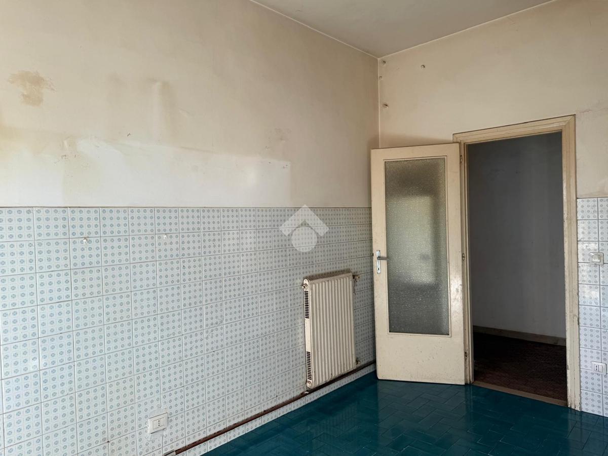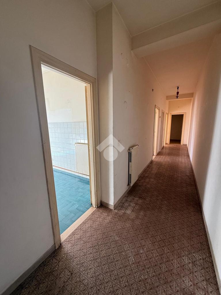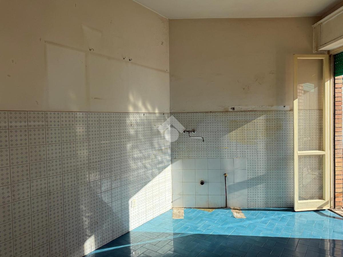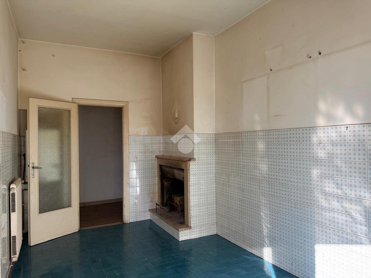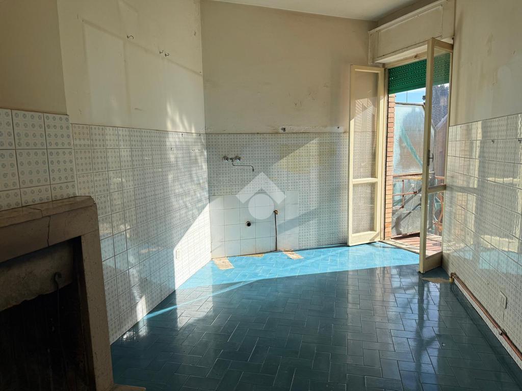 L'ingresso si apre su un corridoio che conduce ai vari ambienti della casa: una cucina abitabile con camino, da cui si accede al balcone, accessibile anche dal soggiorno. La zona notte è composta da un'ampia camera matrimoniale ed un ambiente multifunzionale ideale come soggiorno o come camera da letto se si amplia la cucina creando una zona living open space grazie alle pareti divisorie non portanti, un ripostiglio, dove si potrebbe realizzare il secondo servizio ed un bagno finestrato con vasca. Completa la proprietà una comoda cantina situata al piano terra della palazzina.