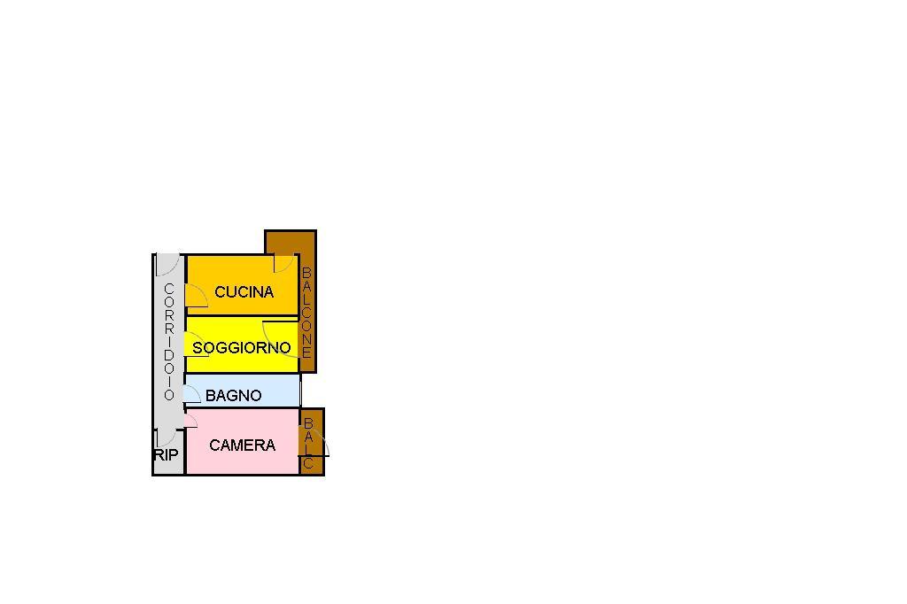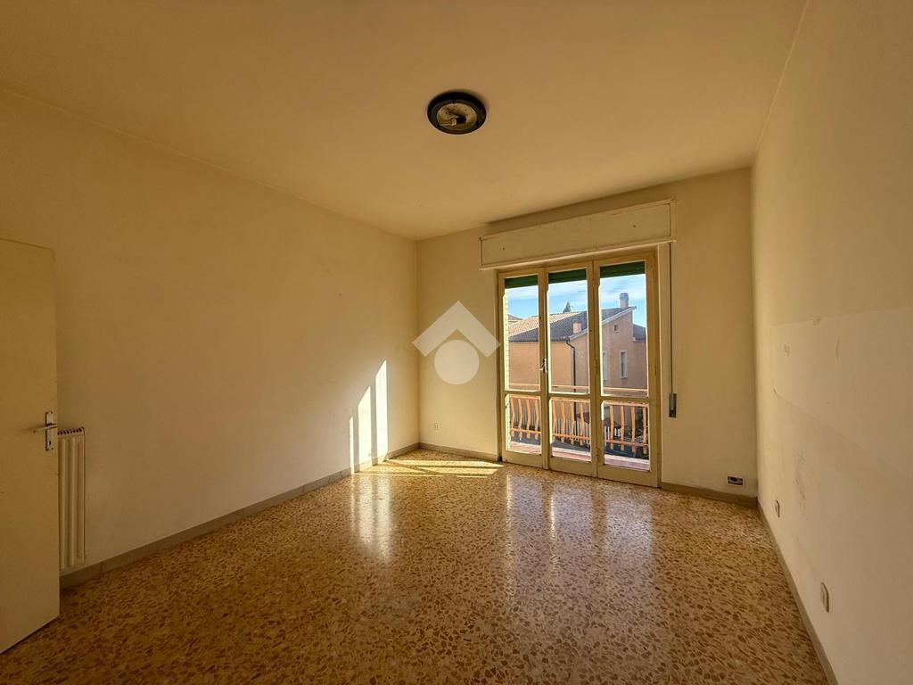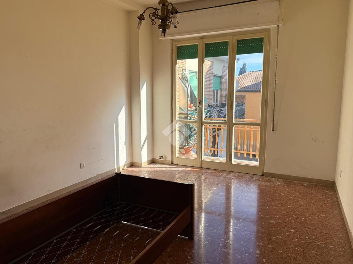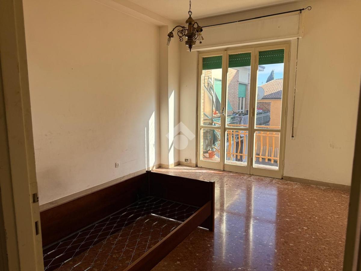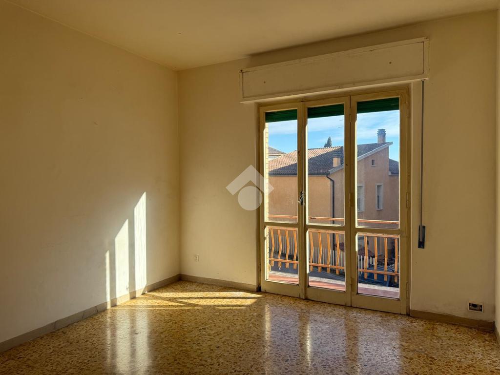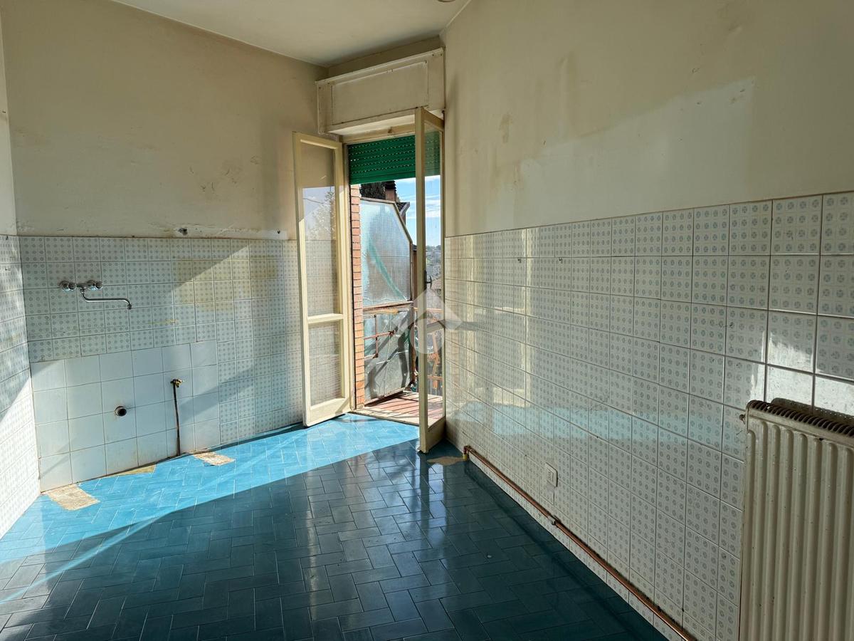 L'ingresso si apre su un corridoio che conduce ai vari ambienti della casa: una cucina abitabile con camino, da cui si accede al balcone, accessibile anche dal soggiorno. La zona notte è composta da un'ampia camera matrimoniale ed un ambiente multifunzionale ideale come soggiorno o come camera da letto se si amplia la cucina creando una zona living open space grazie alle pareti divisorie non portanti, un ripostiglio, dove si potrebbe realizzare il secondo servizio ed un bagno finestrato con vasca. Completa la proprietà una comoda cantina situata al piano terra della palazzina.