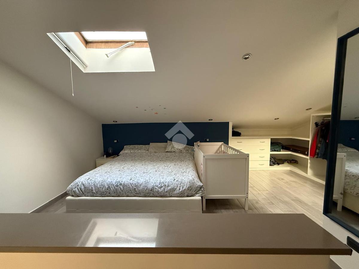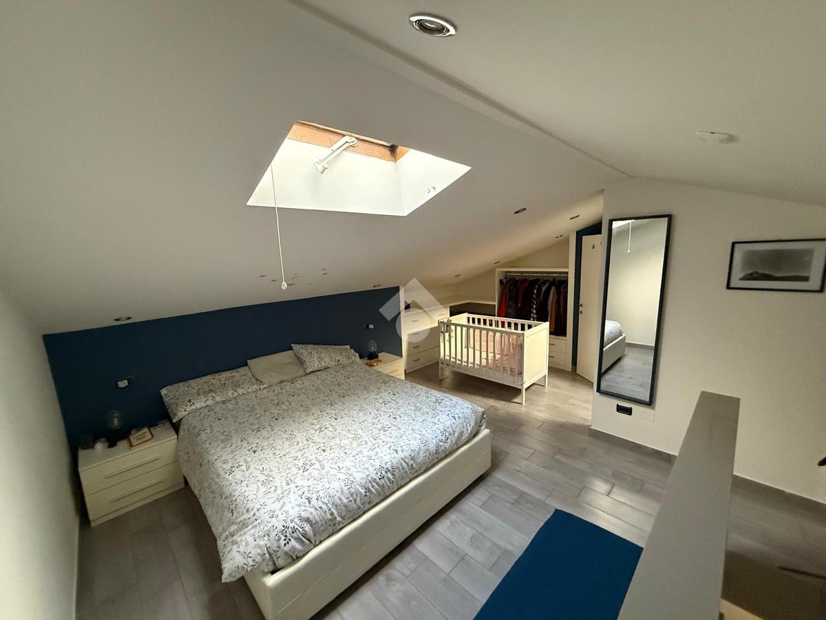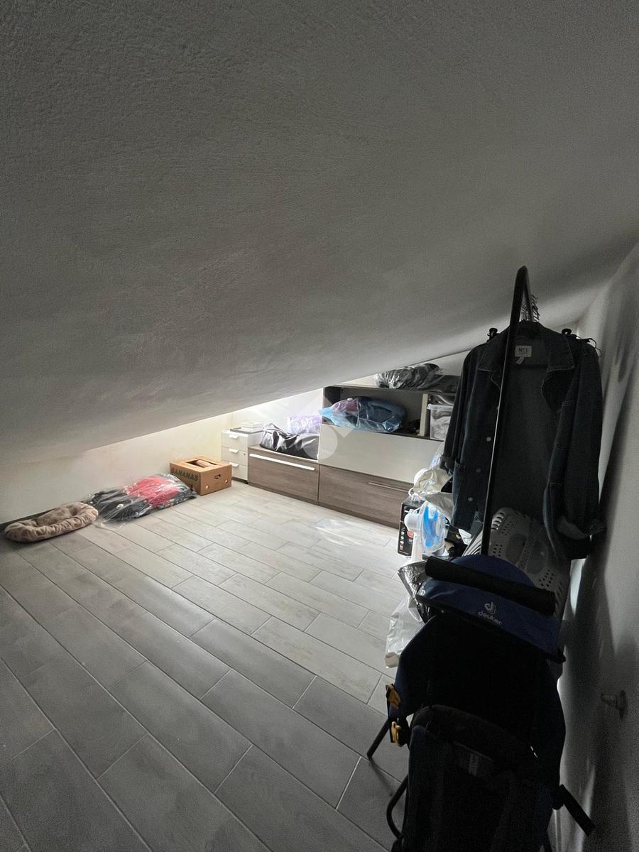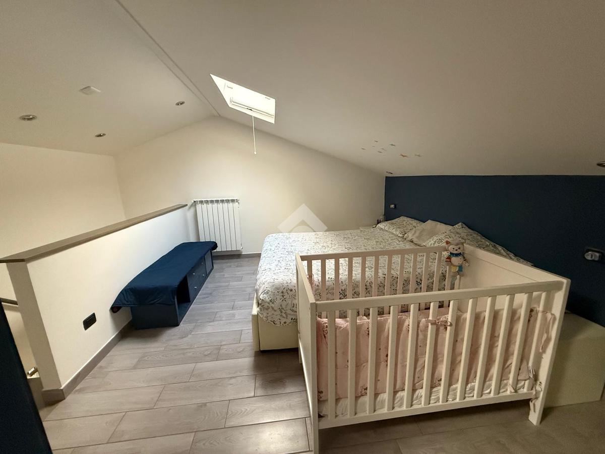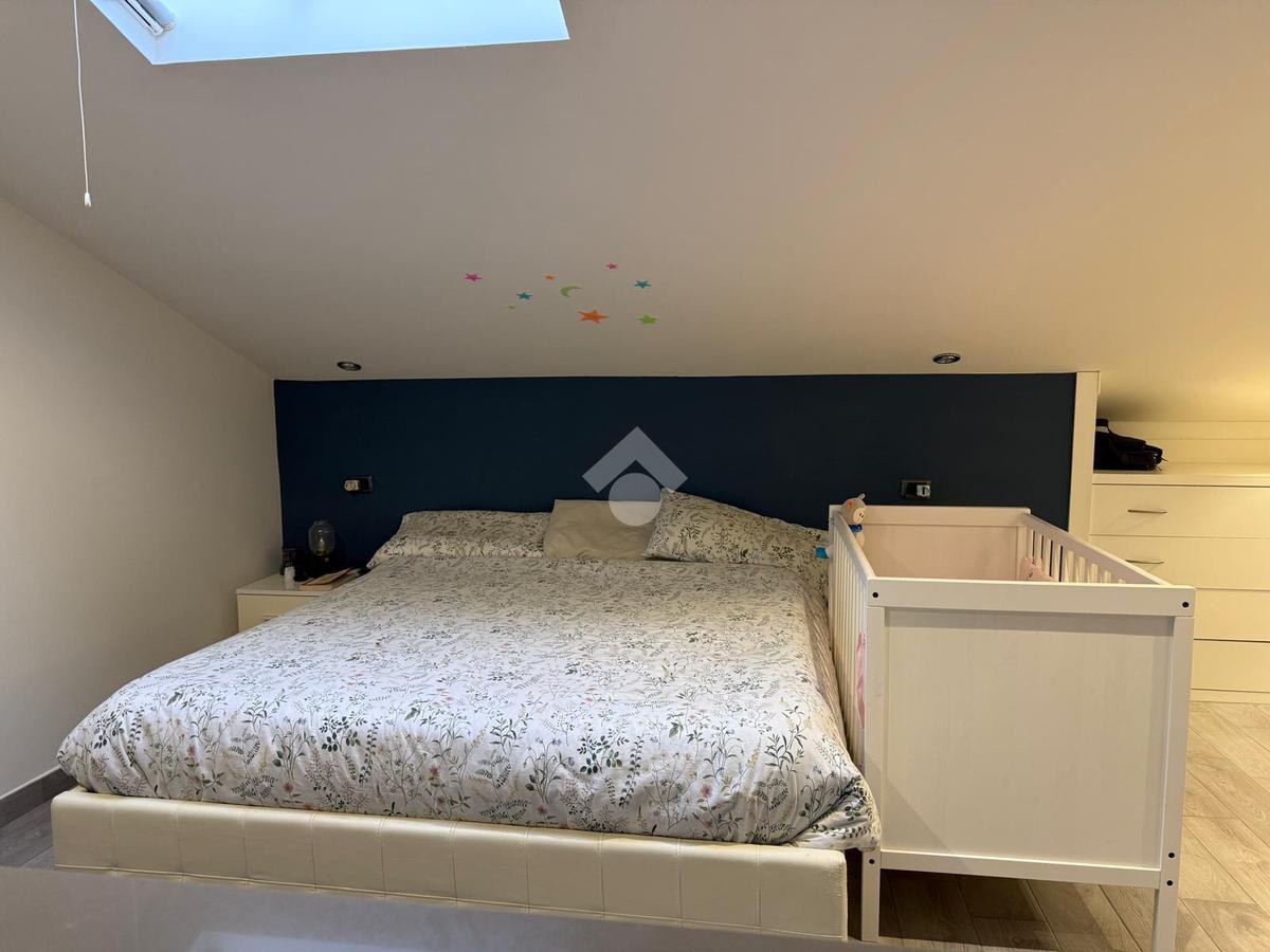 Con una superficie di 80 mq, offre ampi spazi e un design moderno. Al primo livello troviamo un ingresso accogliente, una cucina abitabile, un soggiorno luminoso servito da balcone, un bagno con doccia e una cameretta. Il piano superiore ospita una camera matrimoniale mansardata, un bagno privato finestrato con doccia e una comoda soffitta. La proprietà include anche una cantina di circa 15 mq.