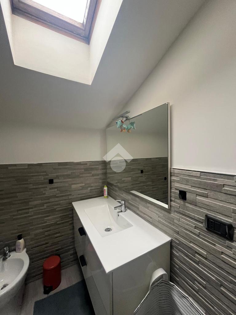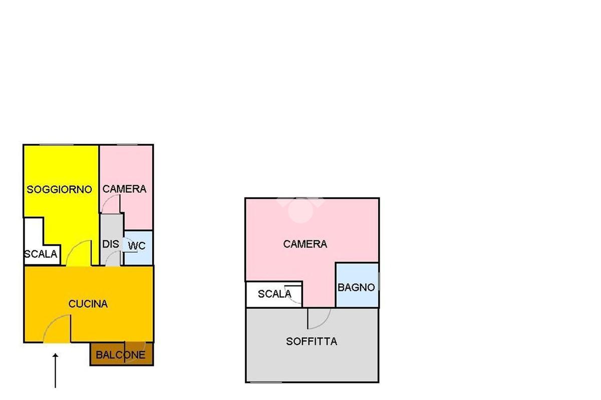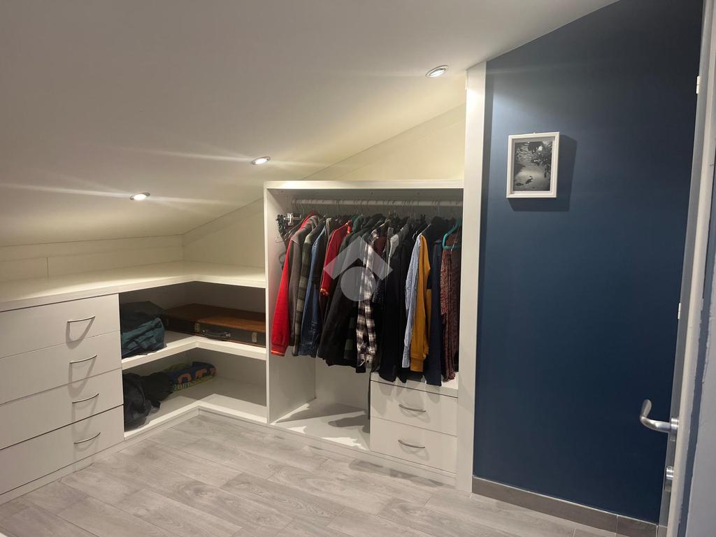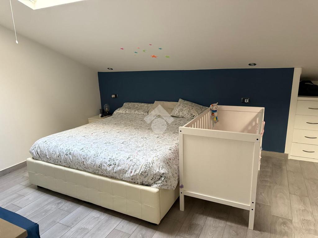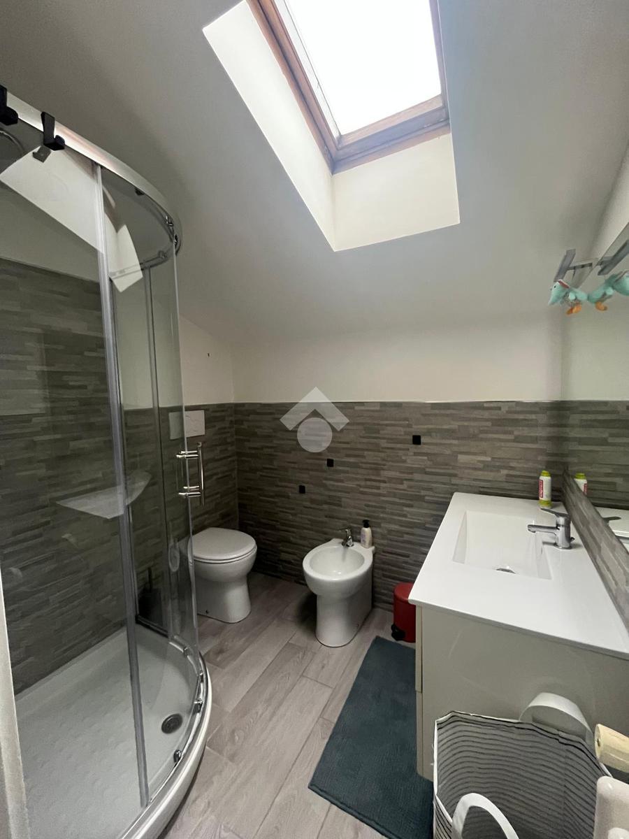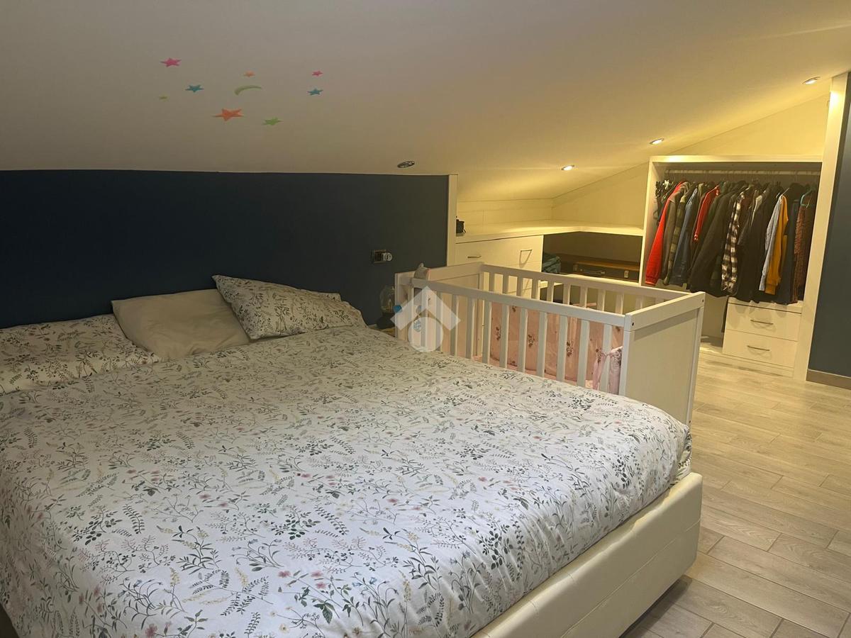 Con una superficie di 80 mq, offre ampi spazi e un design moderno. Al primo livello troviamo un ingresso accogliente, una cucina abitabile, un soggiorno luminoso servito da balcone, un bagno con doccia e una cameretta. Il piano superiore ospita una camera matrimoniale mansardata, un bagno privato finestrato con doccia e una comoda soffitta. La proprietà include anche una cantina di circa 15 mq.