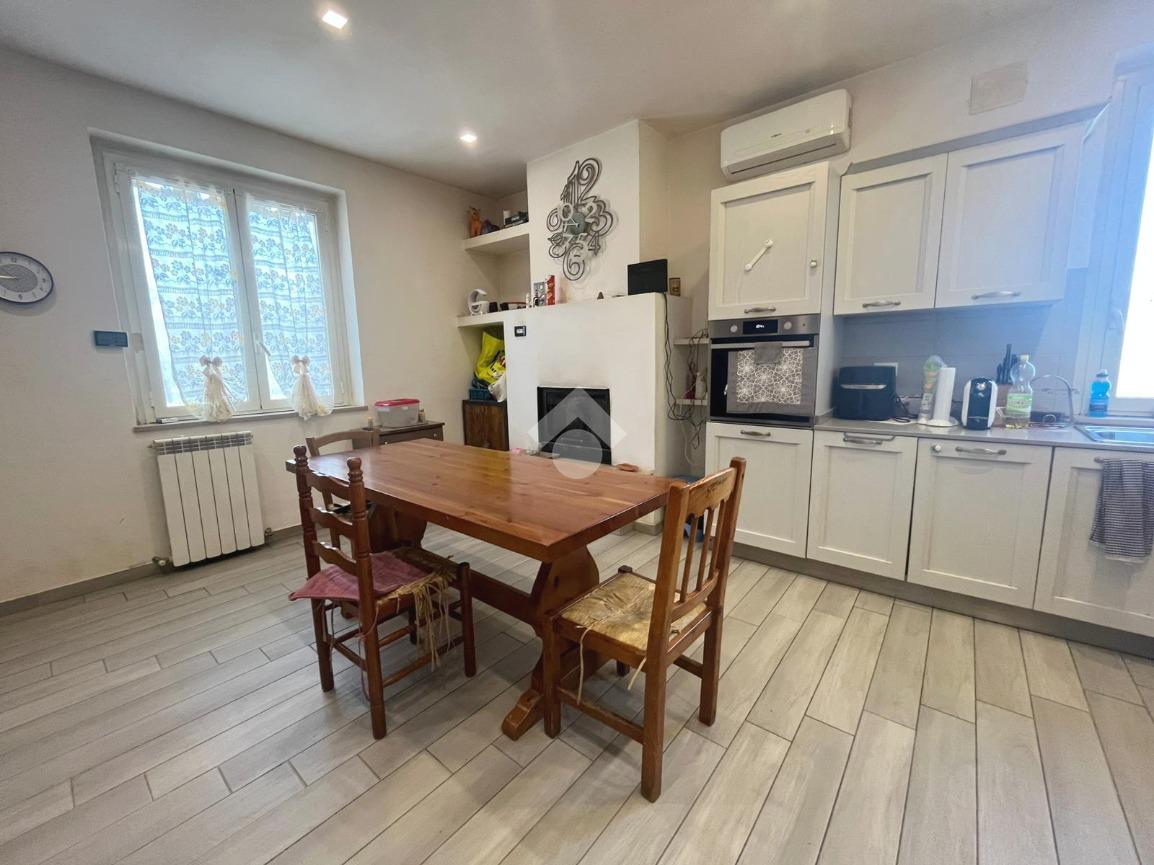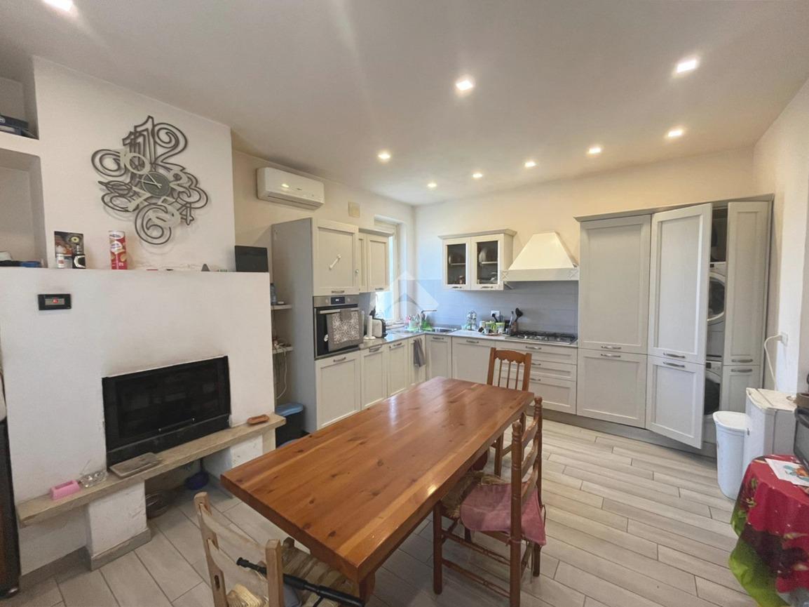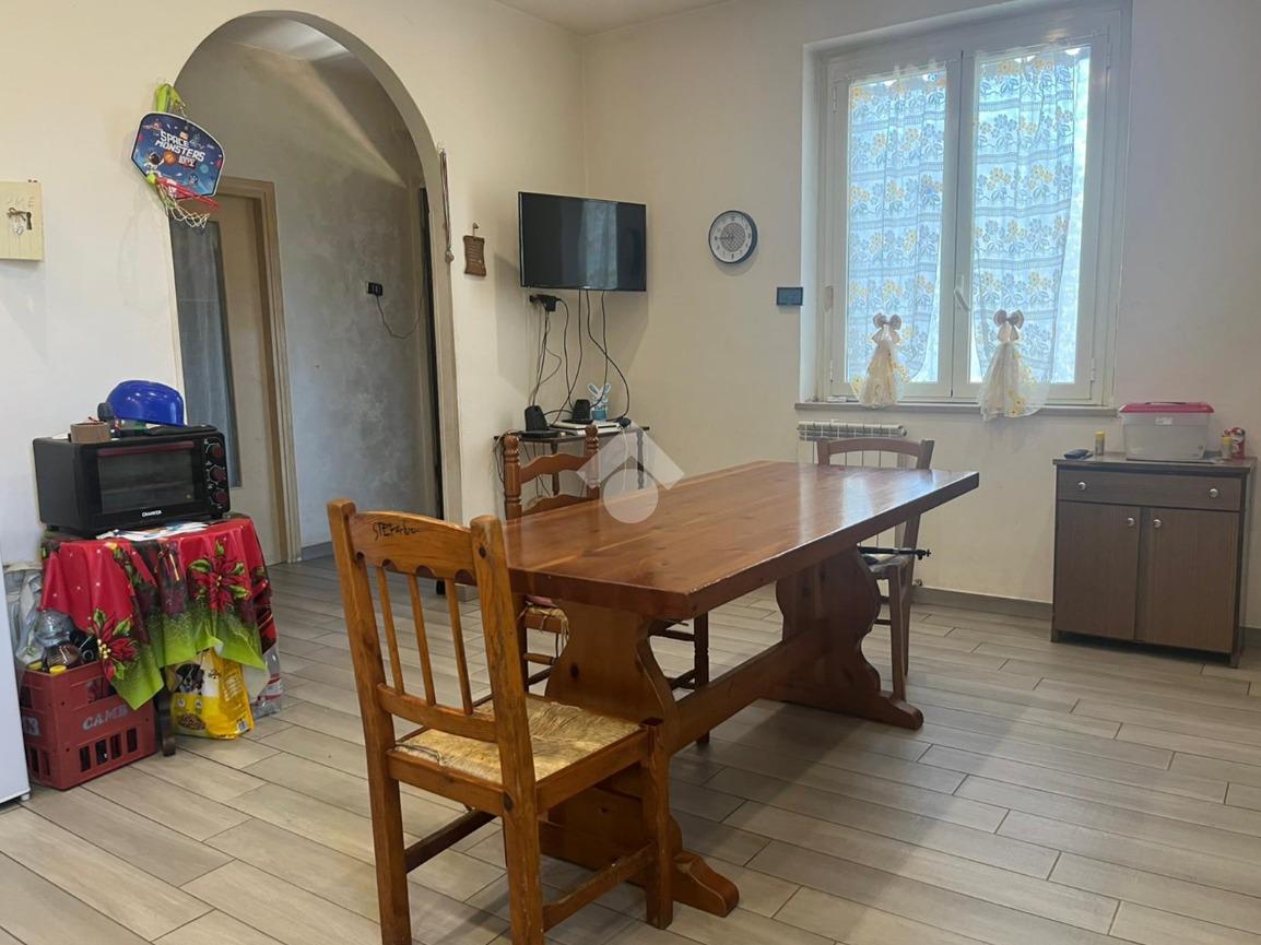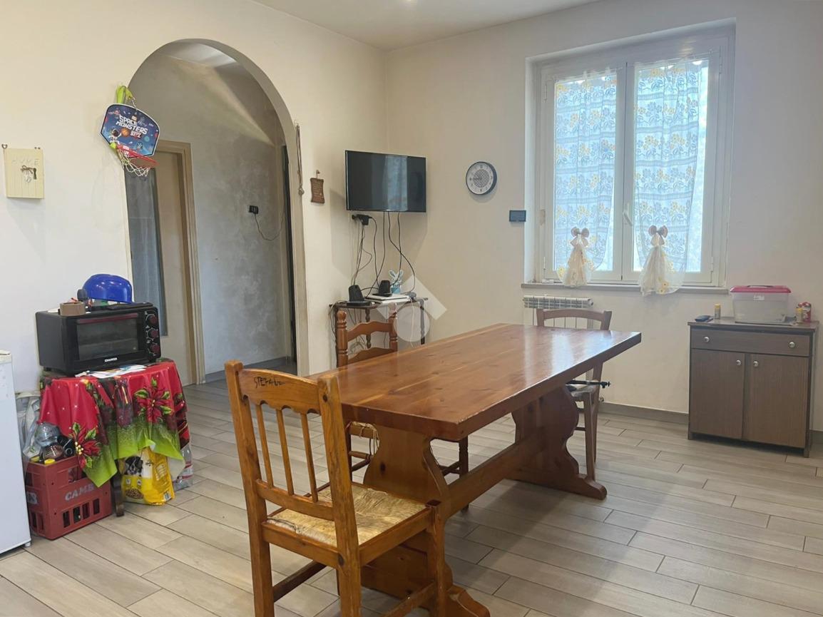 L'abitazione si sviluppa interamente al primo piano ed è composta da ingresso, cucina abitabile recentemente ristrutturata e dotata di termo camino, soggiorno servito da balcone, un bagno finestrato con doccia e due camere matrimoniali.